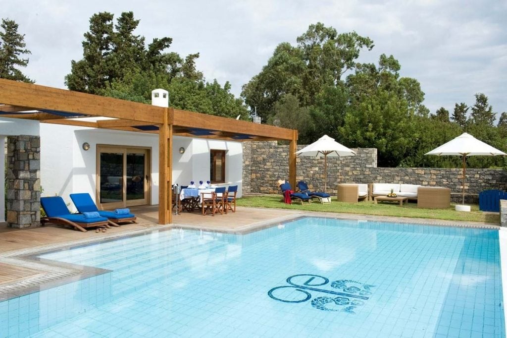 Эти люксы, созданные исключительно для обеспечения максимального личного комфорта, обеспечивают идеальное равновесие между роскошью и домашним уютом. Расположенные на первом ряду от кромки воды и открывающие панорамный вид на ослепительный залив Мирабелло, они состоят из спальни с кроватью queen-size, элегантной гостиной и двух отделанных мрамором ванных комнат с ванной-джакузи, телевизором, отдельной душевой кабиной и паровой баней, а также туалета с душем. Веранда ведет прямо к успокаивающему подогреваемому бассейну, который является общим с соседним бунгало.