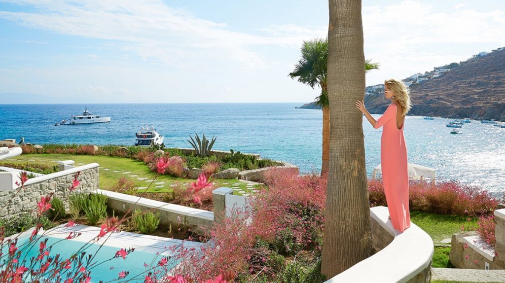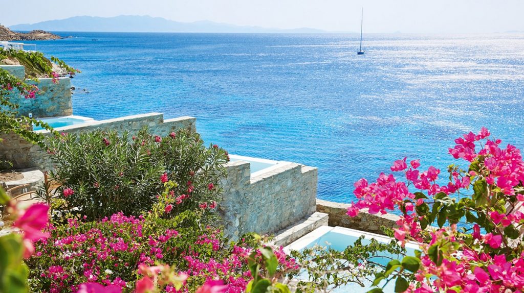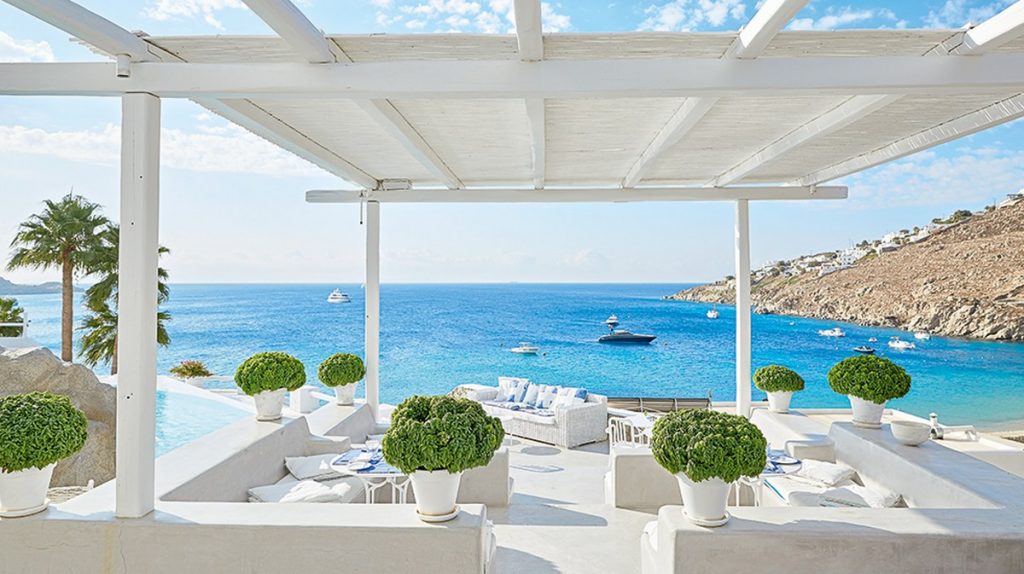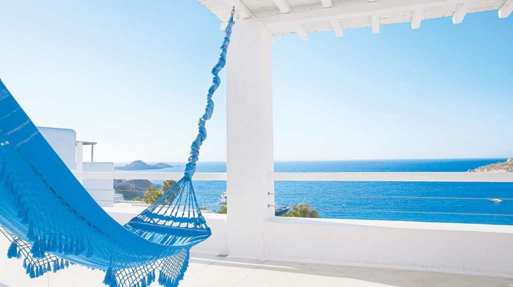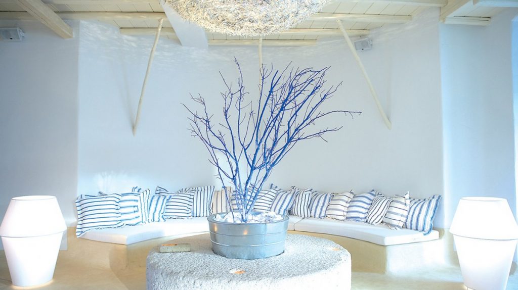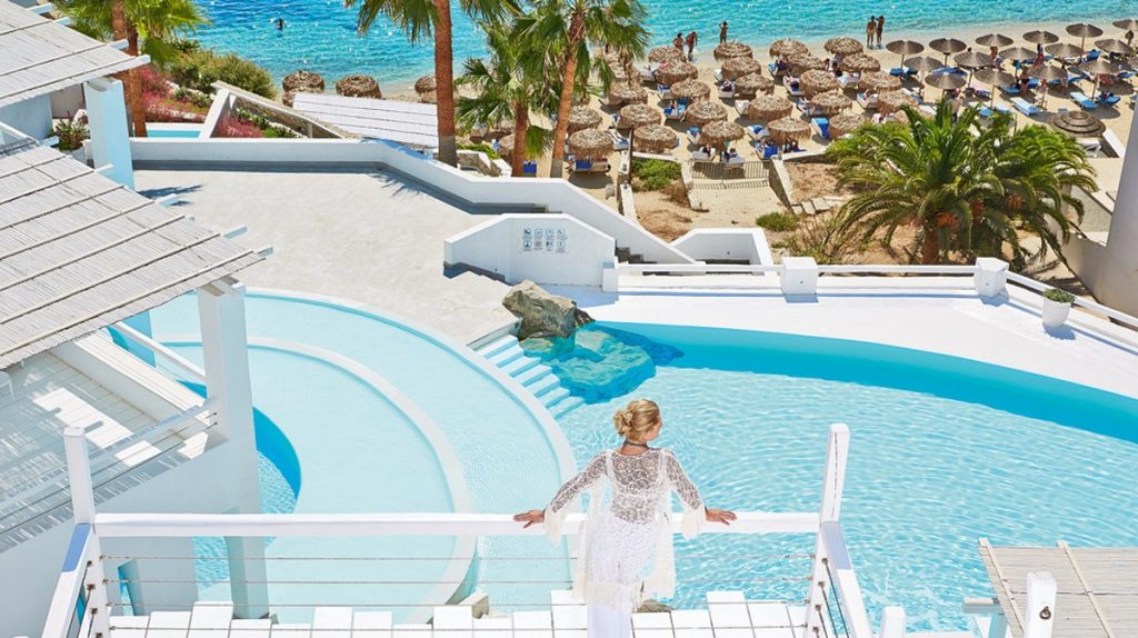 Отель Mykonos Blu расположен на возвышении, рядом с пляжем Псару - одним из лучших пляжей острова. Именно там находится знаменитый ресторан клубного типа Nammos. Средиземноморский стиль, высокий уровень сервиса, сьюты и виллы с частными бассейнами делают его привлекательным для престижного отдыха, в том числе и с детьми.