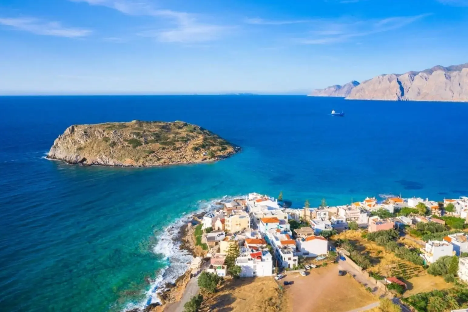 As the landscape shifts, arrive at Vai Palm Beach. Soft sands meet turquoise waters; the rustle of palms sets a slower pace. Then the road carries you toward Mochlos, a postcard of old-world Greece — waterfront tavernas, simple beauty, and the freshest seafood paired with the kind of local wine that tastes like the island itself.