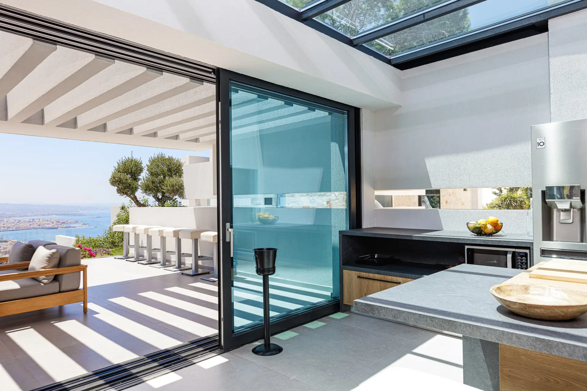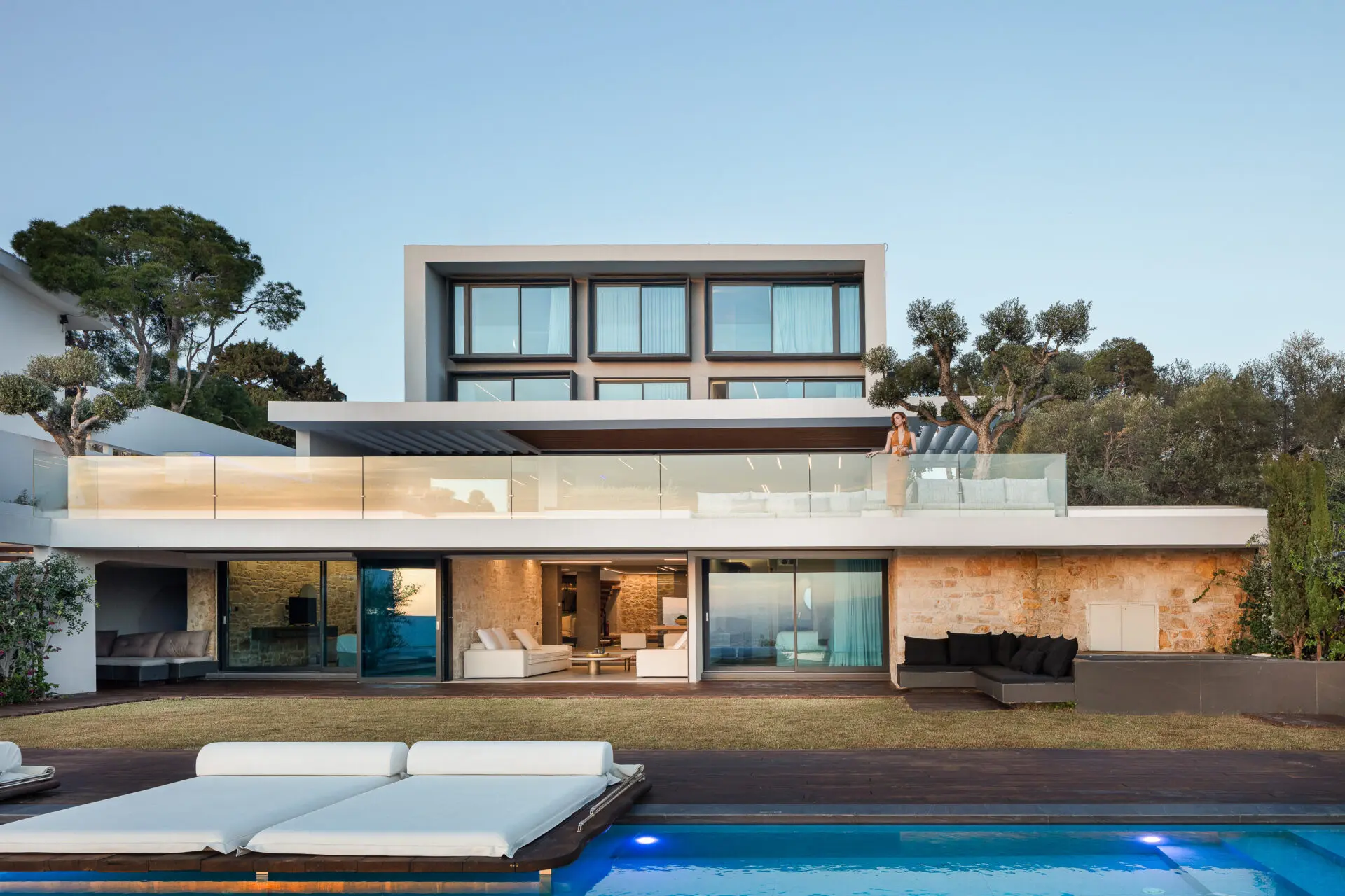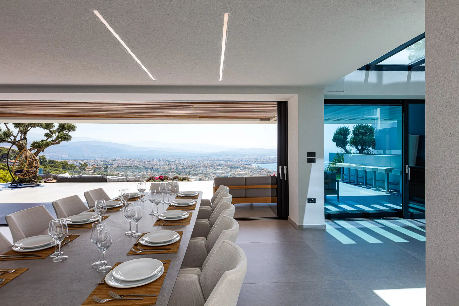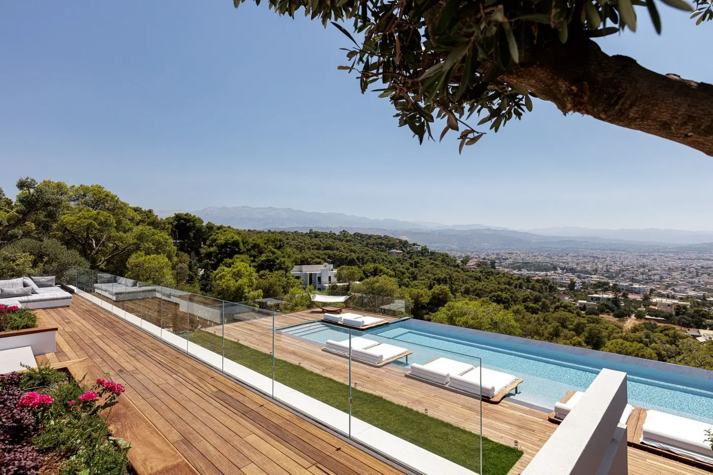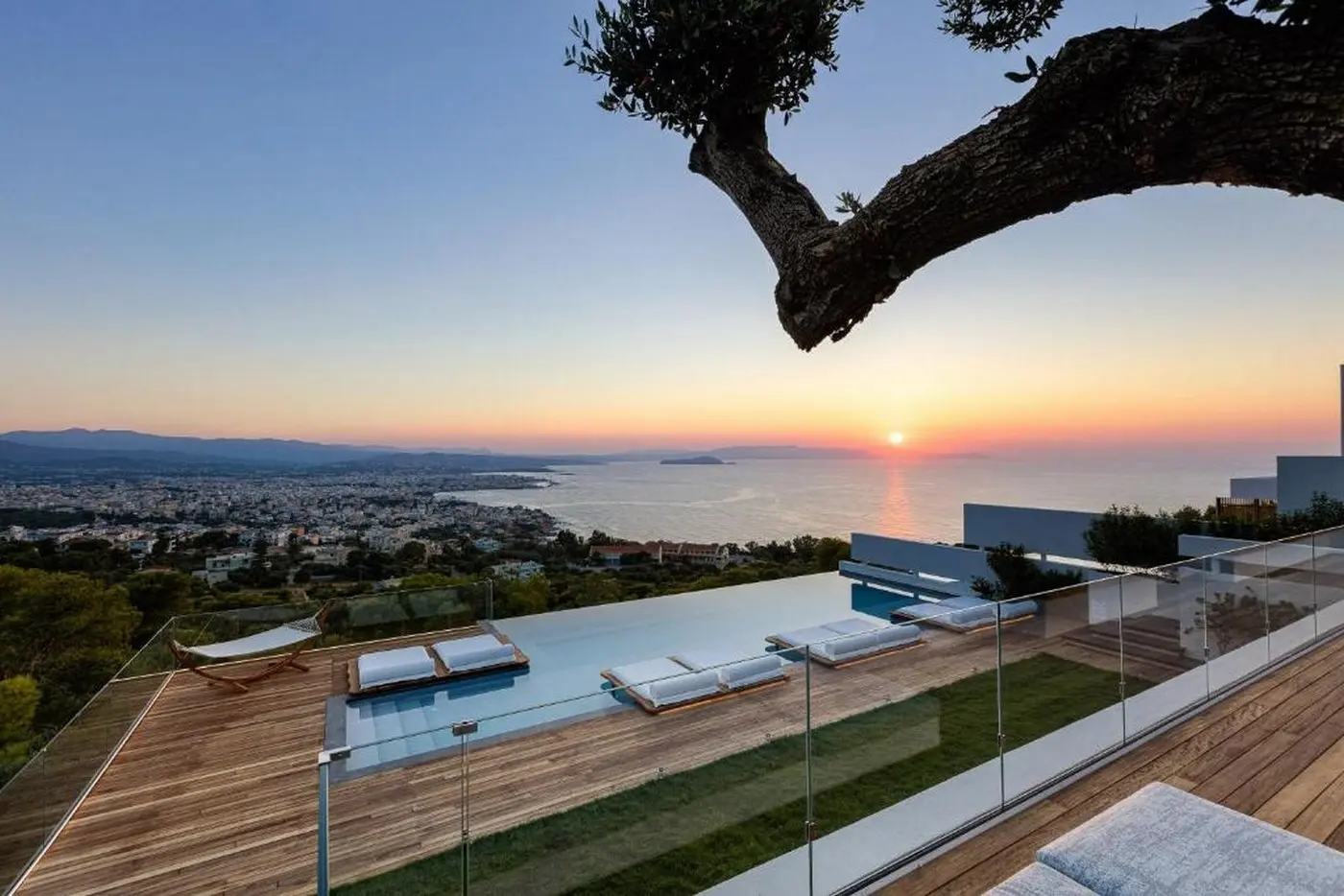 Cavo Dago Villa crowns the hill of Profitis Ilias in Chania—a sanctuary where architecture, light and landscape merge. Every glass line frames the Aegean horizon; every material—stone, teak, concrete and steel—reflects the villa’s design ethos: clarity, balance, emotion.