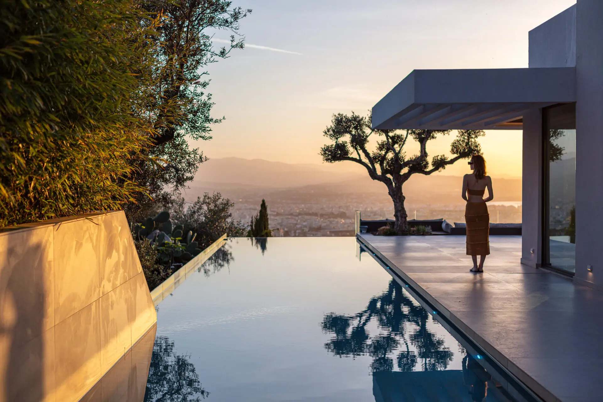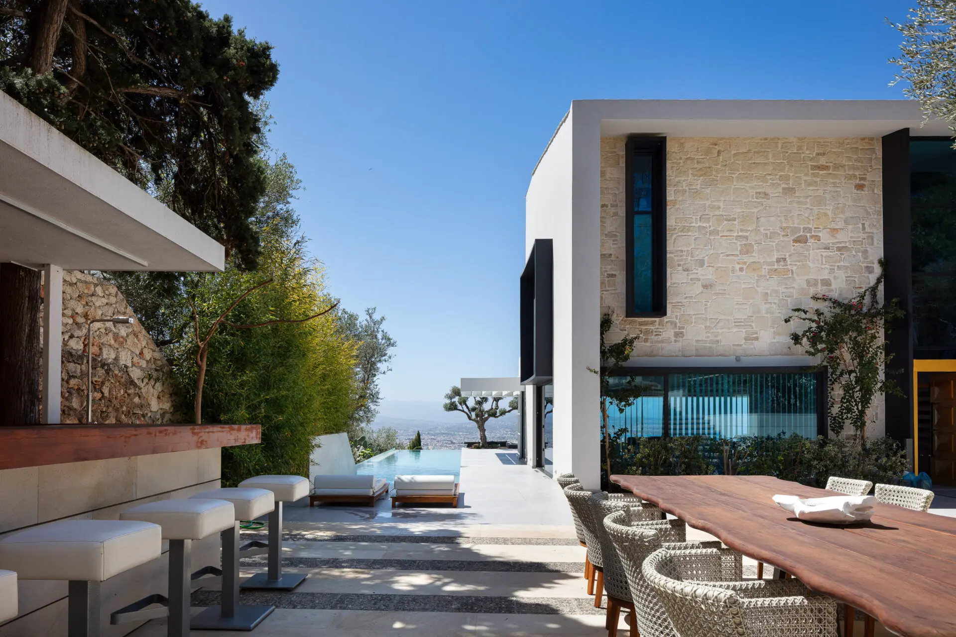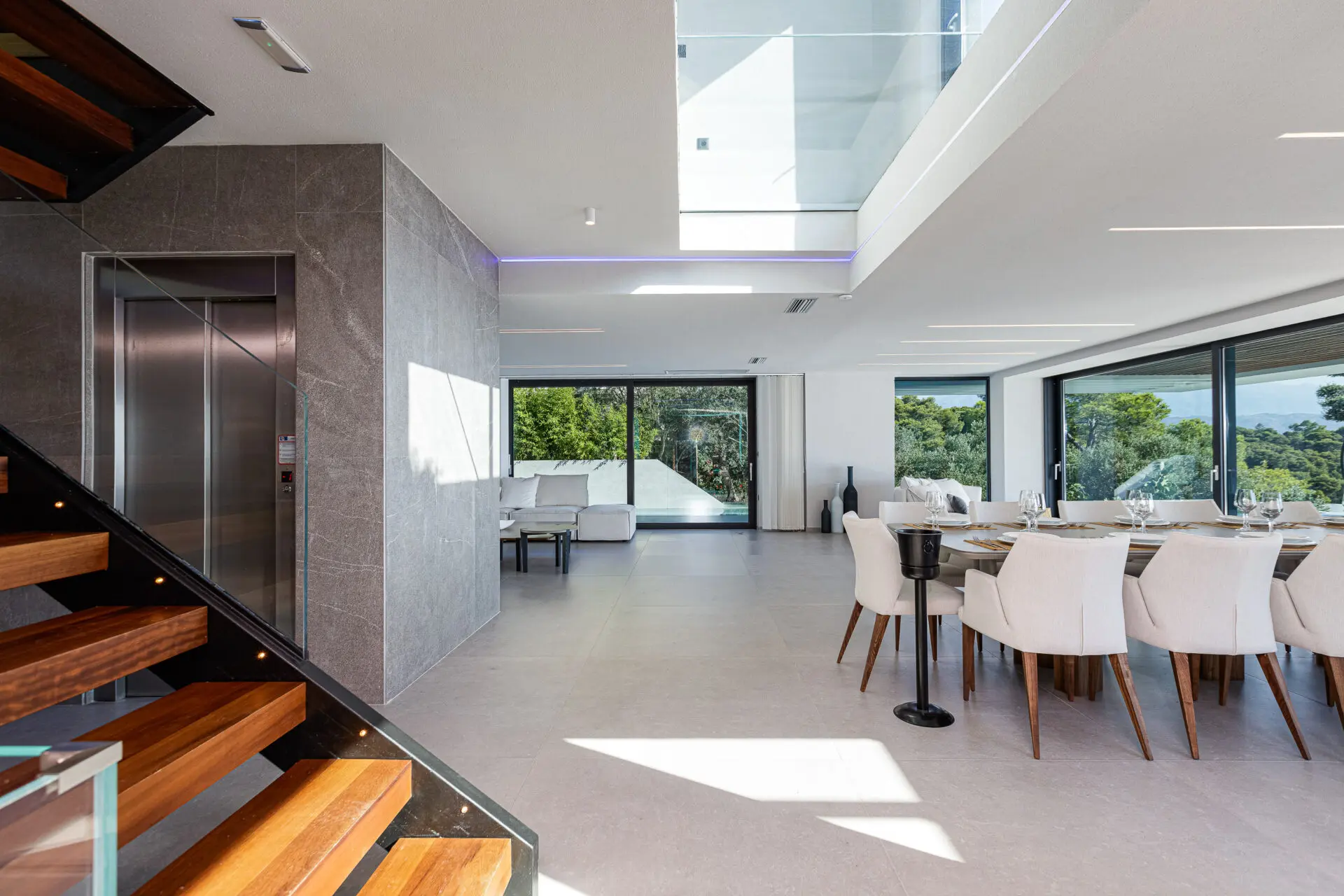 The 410 m² residence unfolds over four levels, surrounded by 1 600 m² of terraces that cascade toward the sea and city. Inside, design breathes: light passes through open corridors, textures speak in whispers, and stillness feels architectural.