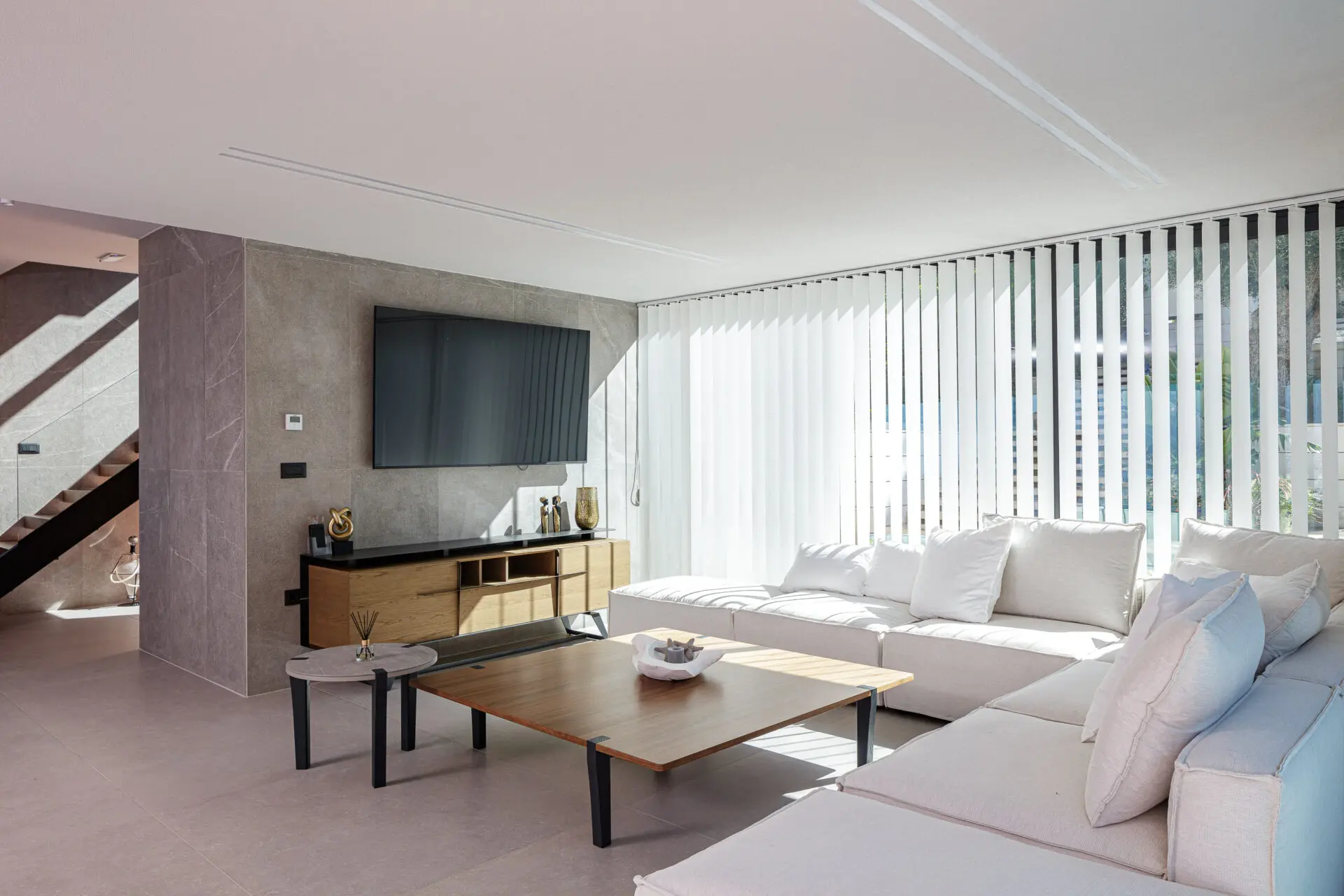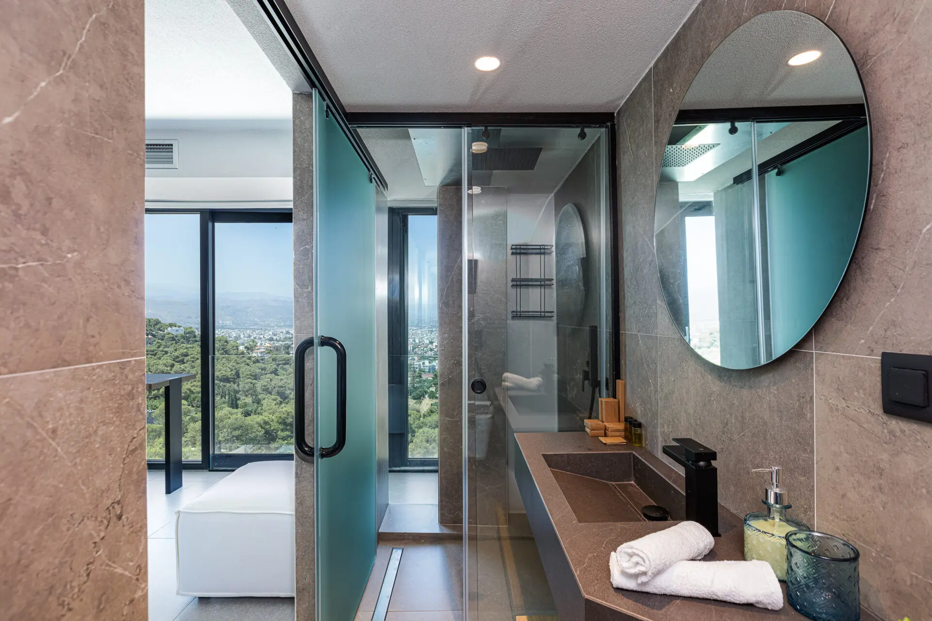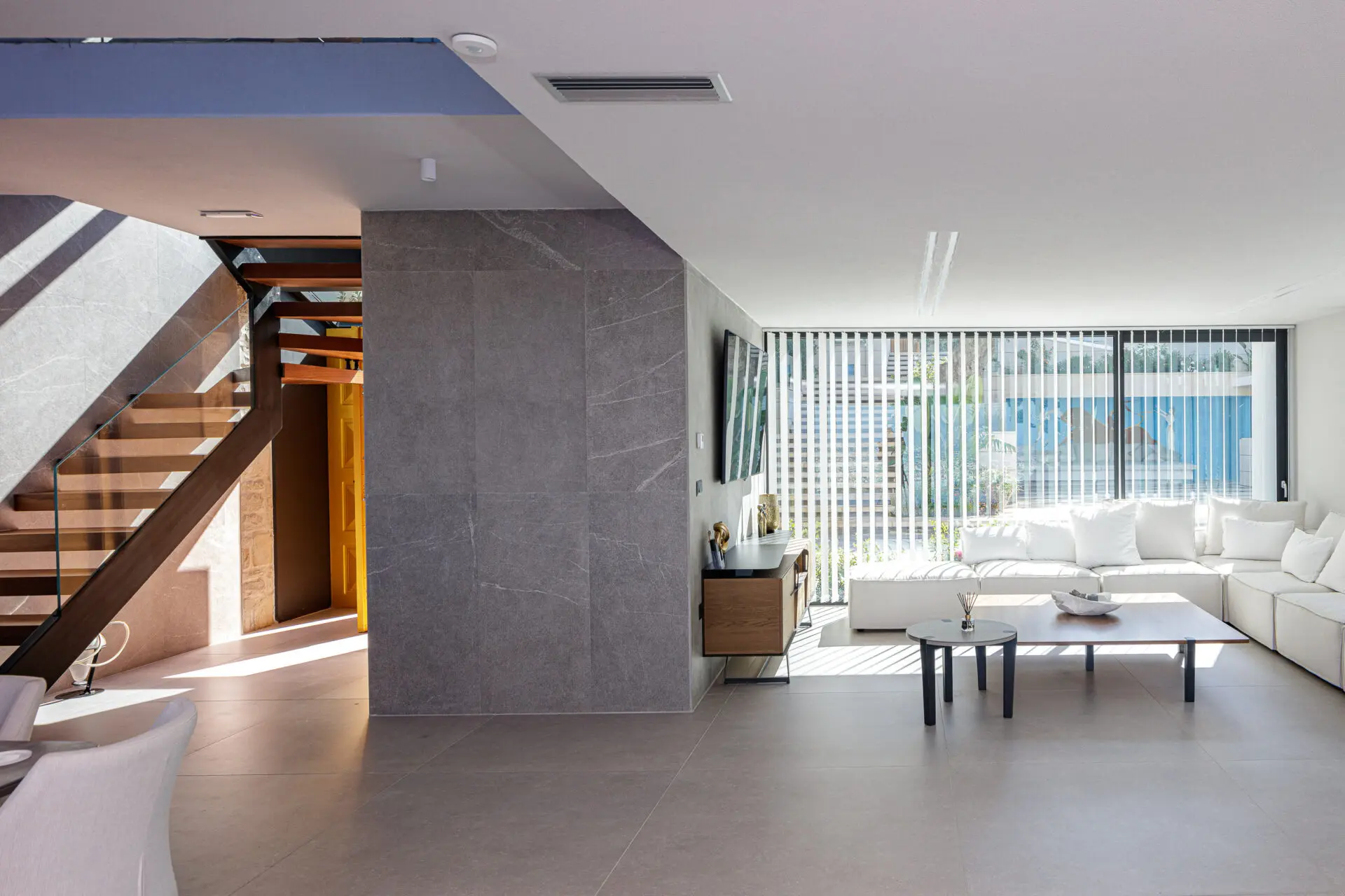 The 410 m² residence unfolds over four levels, surrounded by 1 600 m² of terraces that cascade toward the sea and city. Inside, design breathes: light passes through open corridors, textures speak in whispers, and stillness feels architectural.