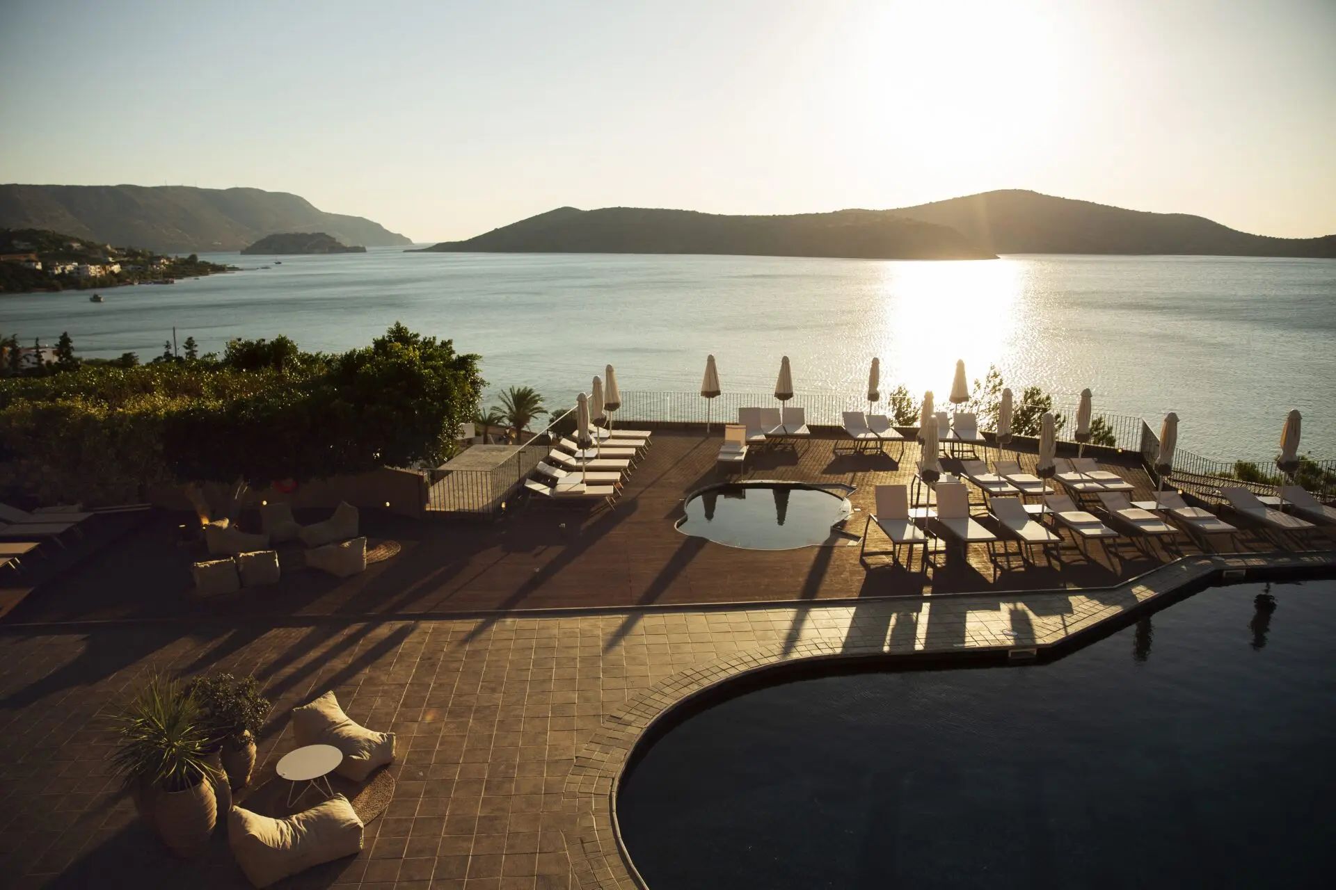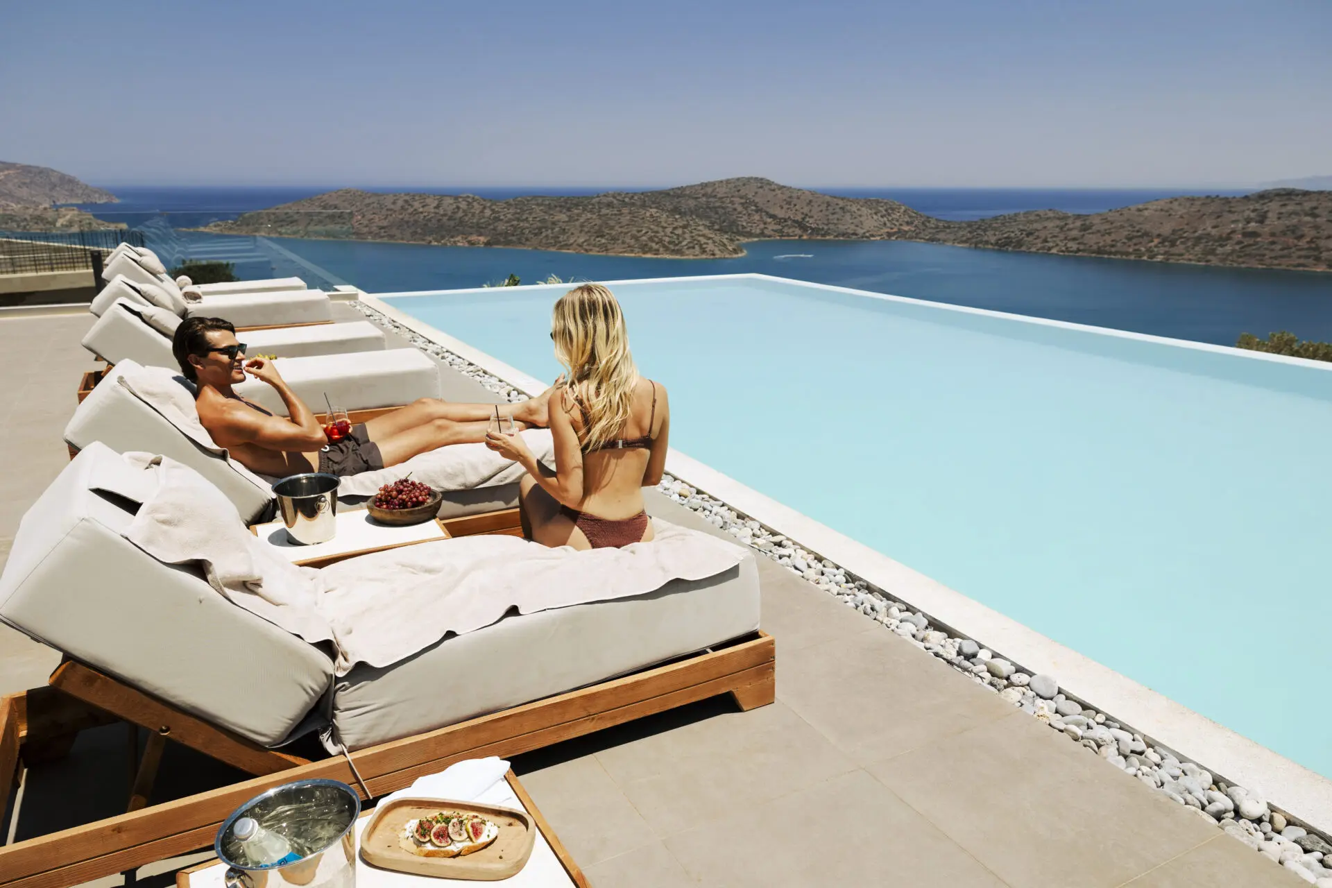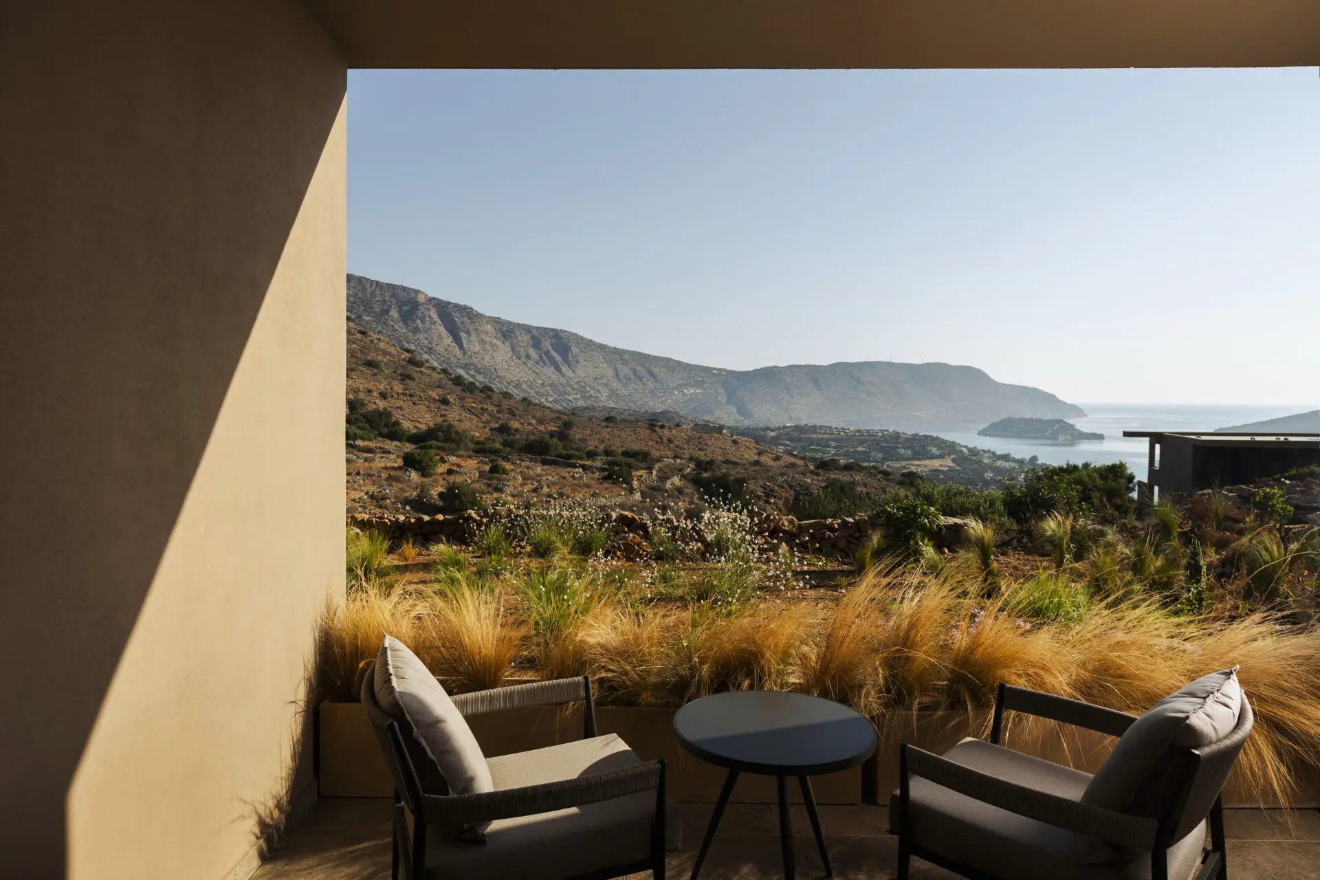 Carved into the Elounda hillside, Domes Aulūs Elounda, Curio Collection by Hilton, opens toward Mirabello Bay with an aura of calm sophistication. Natural stone, olive wood, and woven textures define an aesthetic of eco-luxury design in Crete, framed by endless light and sea.