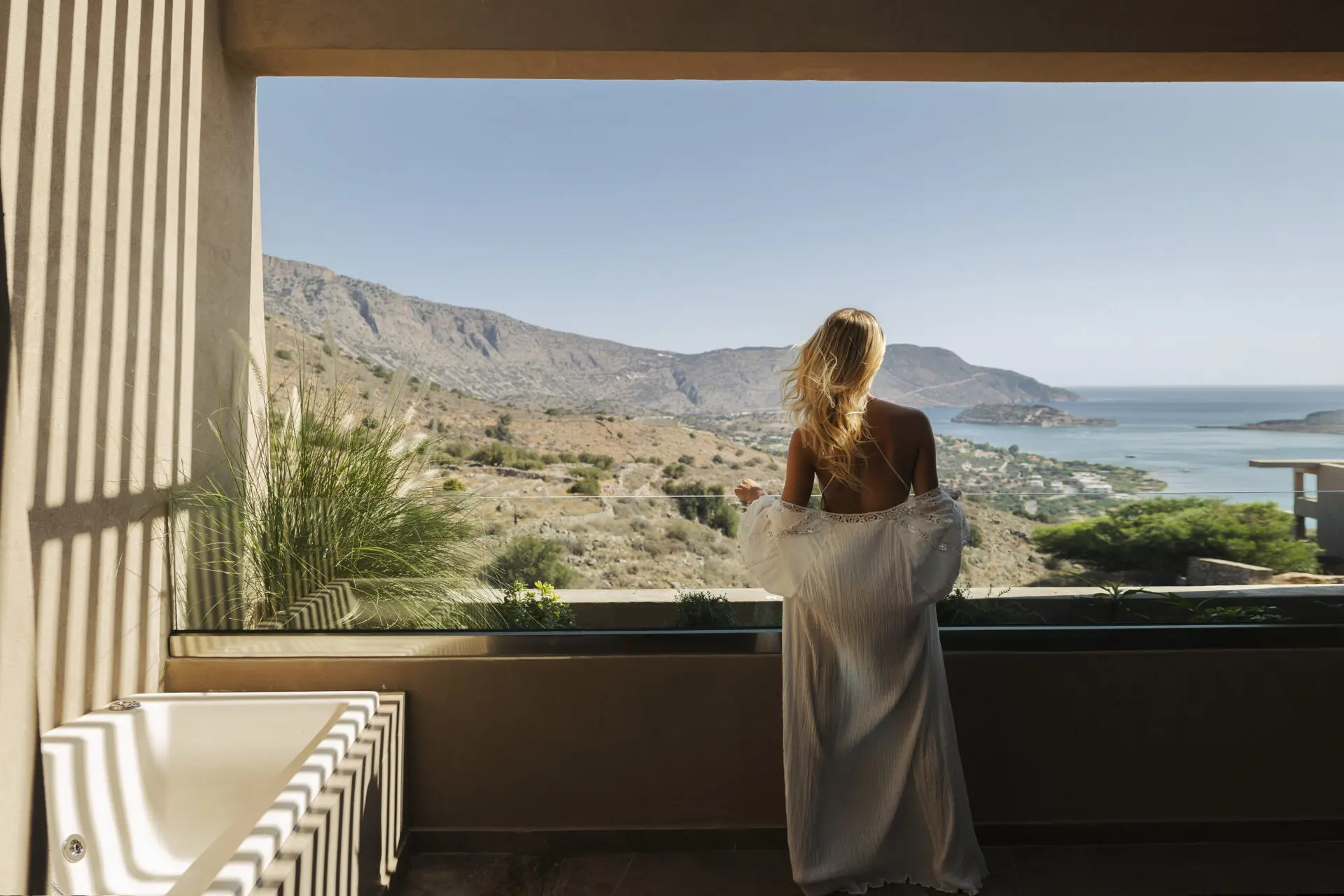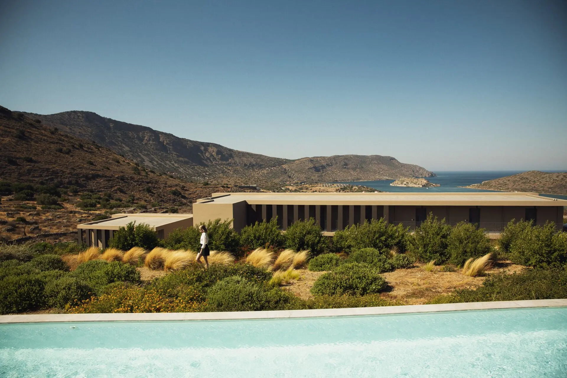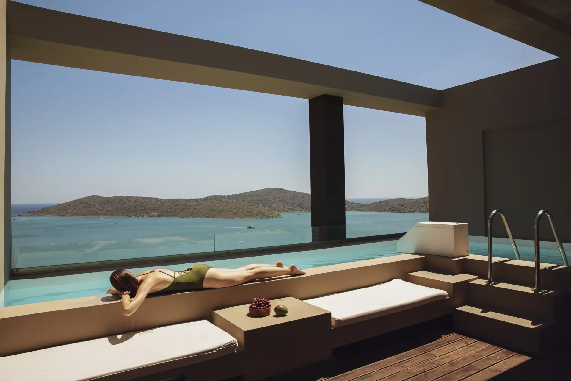 Carved into the Elounda hillside, Domes Aulūs Elounda, Curio Collection by Hilton, opens toward Mirabello Bay with an aura of calm sophistication. Natural stone, olive wood, and woven textures define an aesthetic of eco-luxury design in Crete, framed by endless light and sea.