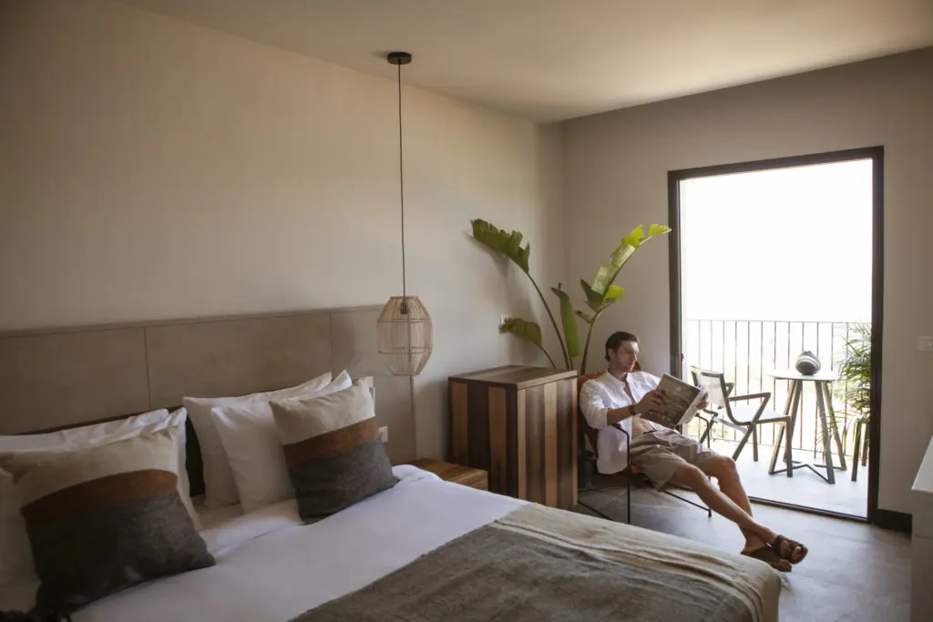 This adults-only, all-inclusive resort feels quietly luxurious — mornings under linen shade, afternoons suspended over infinity pools, and evenings wrapped in soft Mediterranean breeze. Each detail expresses balance: sustainability meets sensuality, and comfort meets conscious living.