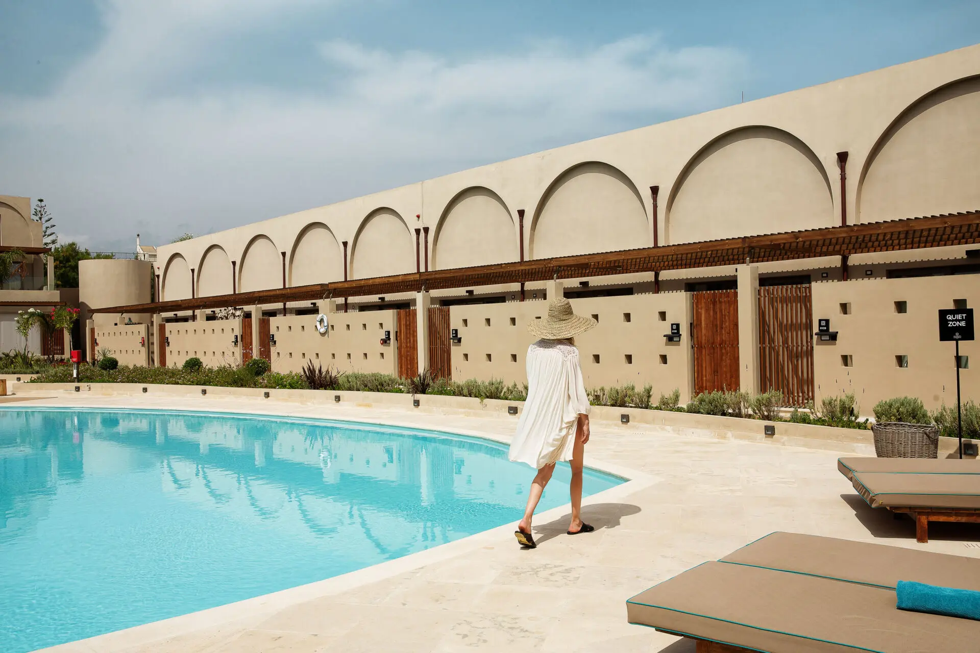 By day, Noruz moves with its pulse: music low, laughter soft, waves folding over sand. The rhythm gathers at the main pool – social, sunlit, alive. And then, as evening lowers its tone, everything slows. A second pool, terraced toward the horizon, becomes silence made visible. Loungers drift into shade, voices quiet, and for a moment, it feels like the sea has stopped to listen.