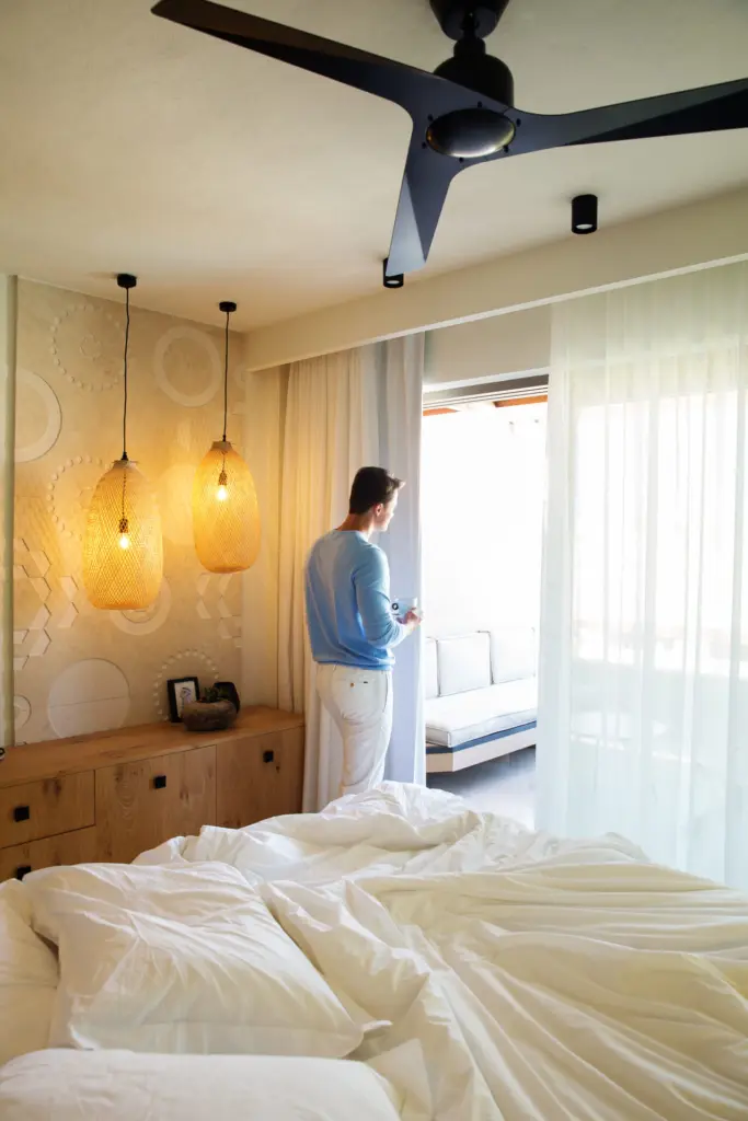 The horizon enters first, then sound, then air. This suite feels like an inhale – the sea just close enough to blur perception, just far enough to breathe.