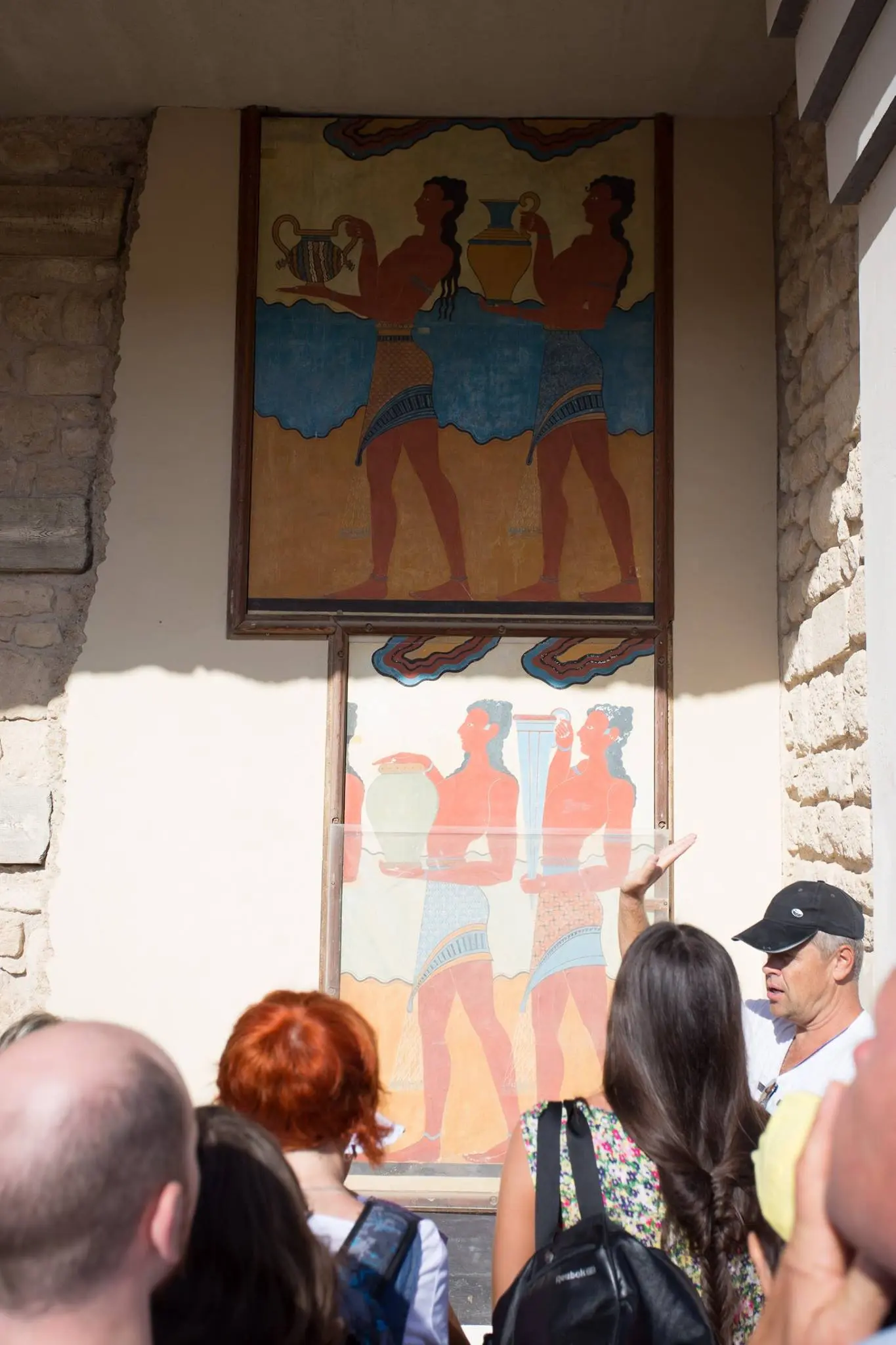 Don’t forgetComfortable shoes help at Knossos and during the Heraklion walking tour. A light layer may be useful inside museum spaces or during cooler months. Come ready for detail — frescoes, symbols, tablets, wine notes, city textures — but leave room for surprise.