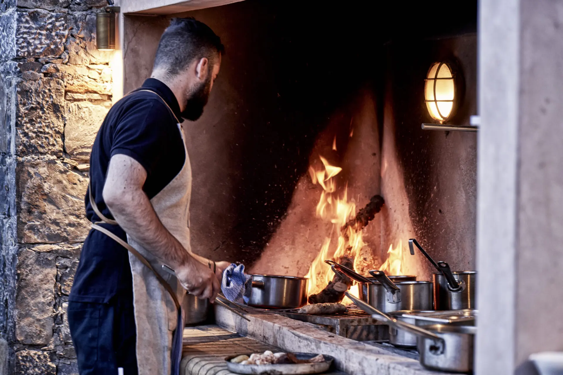 Fire. Olive oil. Mountain herbs. Wine poured without hesitation.