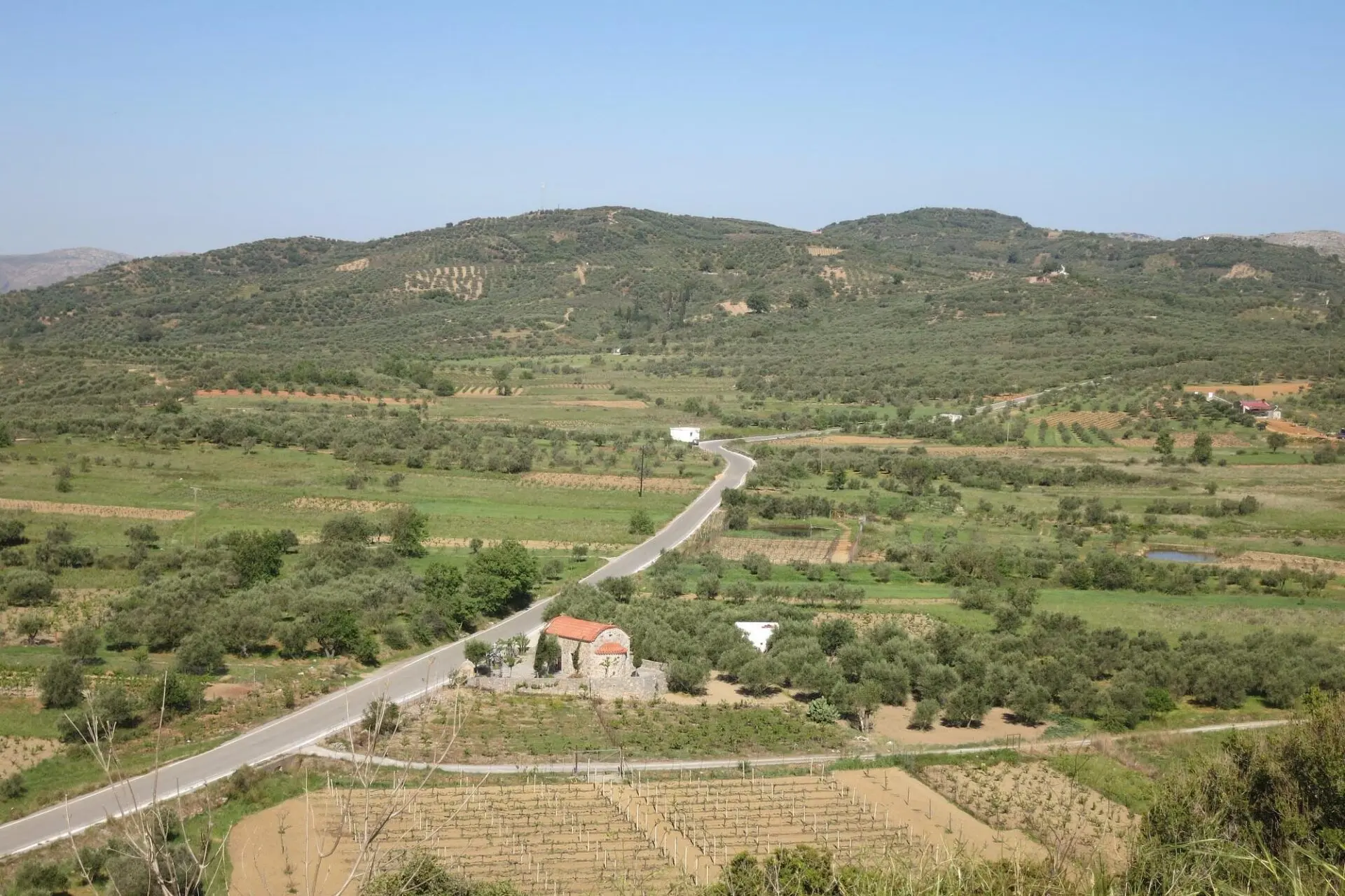 Dikti Mountains and views toward Diktaion Andron — where myth shaped land and land shaped food.