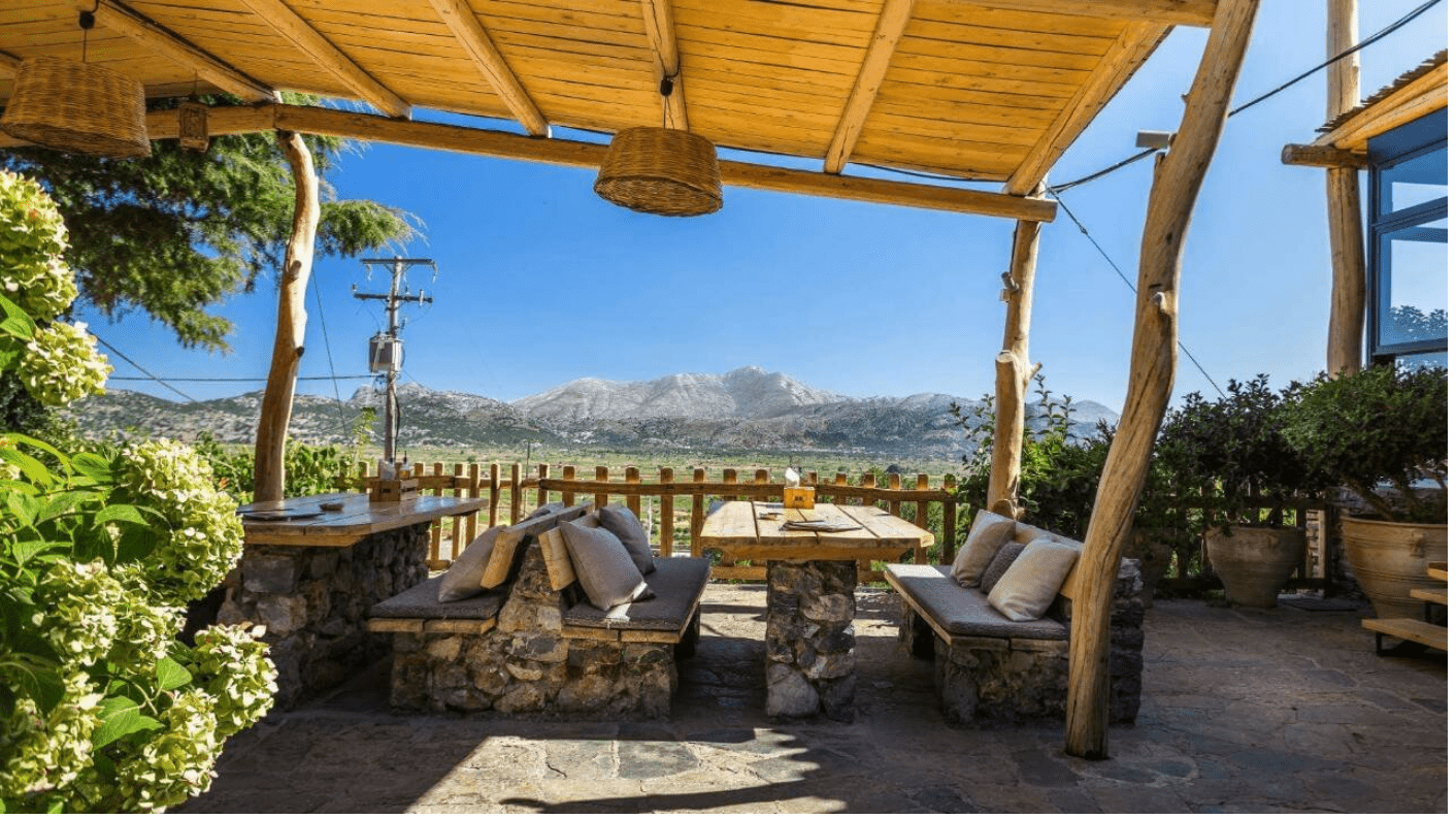 By the time you sit at the table overlooking the Dikti Mountains, the plateau has already done its work.