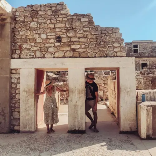 At Knossos Palace, walk the frescoed labyrinth with your local guide, tracing the footsteps of kings and storytellers who defined Europe’s first civilization.