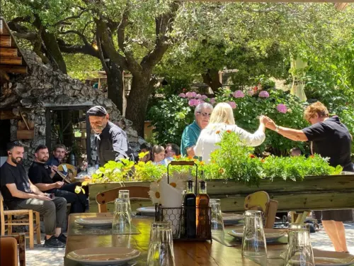 Back in the sunlight, hunger returns naturally. A table is waiting — not a restaurant, but a family tavern where recipes are older than memory. Dishes appear without pretense: dakos topped with ripe tomato, wild greens glistening in oil, lamb kissed with lemon. Your driver joins for a moment, raising a glass of local wine. No one hurries. This is what Cretans call meraki — to do something with soul.